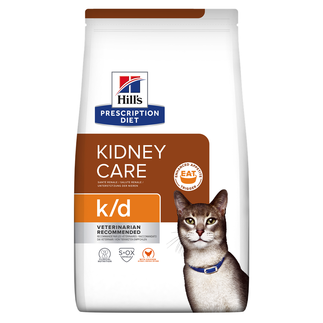 המזון מתאים לתמיכה במצבים של: מחלת כליות כרונית (כל השלבים בדירוג IRIS), הפרעות תפקוד המערכת הקרדיווסקולרית, אבני ציסטאין ואבני אורט בדרכי השתן, תמיכה בתיאבון במצבי מחלה, תמיכה במסת השריר בגוף. כיצד המזון עוזר: עוזר לשמור על תפקוד כליות בריא, מסייע לעורר תאבון ותורם להגברת צריכת המזון,תומך ביכולת הטבעית לבנות ולשמור על מסת שריר. כיצד המזון עובד: רמה מבוקרת של זרחן ורמה נמוכה של נתרן בשילוב העשרה באומגה-3 משמן דגים, טכנולוגיית “טריגר הגברת התיאבון” (E.A.T.) עבור חתולים, רמות גבוהות של חומצות אמינו חיוניות ו-L קרניטין. מתאים לשלב חיים: בוגר, מבוגר. אינו מומלץ עבור: גורי חתולים בתהליך גדילה, חתולות הרות או מניקות. רכיבים: אורז תירס גלוטן שומן חזיר עיסת סלק סוכר ארוחת עוף תוצר לוואי אבקת ביצים עוף מיובש האבקה תאית דגים חומצה לקטית סידן קרבונט טעם כבד עוף יבש DL- מתיונין אשלגן ציטראט אשלגן כלורי כולין כלוריד ויטמינים (תוסף ויטמין E L-Ascorbyl-2-polyphosphate (מקור של ויטמין C) תוסף ניאצין תיאמין mononitrate ויטמין A מוסף Pantothenate סידן תוספת ריבופלבין ביוטין ויטמין B12 פירידוקסין הידרוכלוריד חומצה פולית תוסף ויטמין D3) טאורין מי יוד מלח מינרלים (ברזל סולפט תחמוצת אבץ נחושת סולפט מנגן אוקסיד סידן Iodate נתרן סלניט) טוקופרול לרעננות L-טריפטופן חומצה זרחנית בטא קרוטן טעמים טבעיים.
